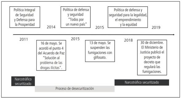 Sarmiento, R. (2021). Desecuritización y securitización del narcotráfico en